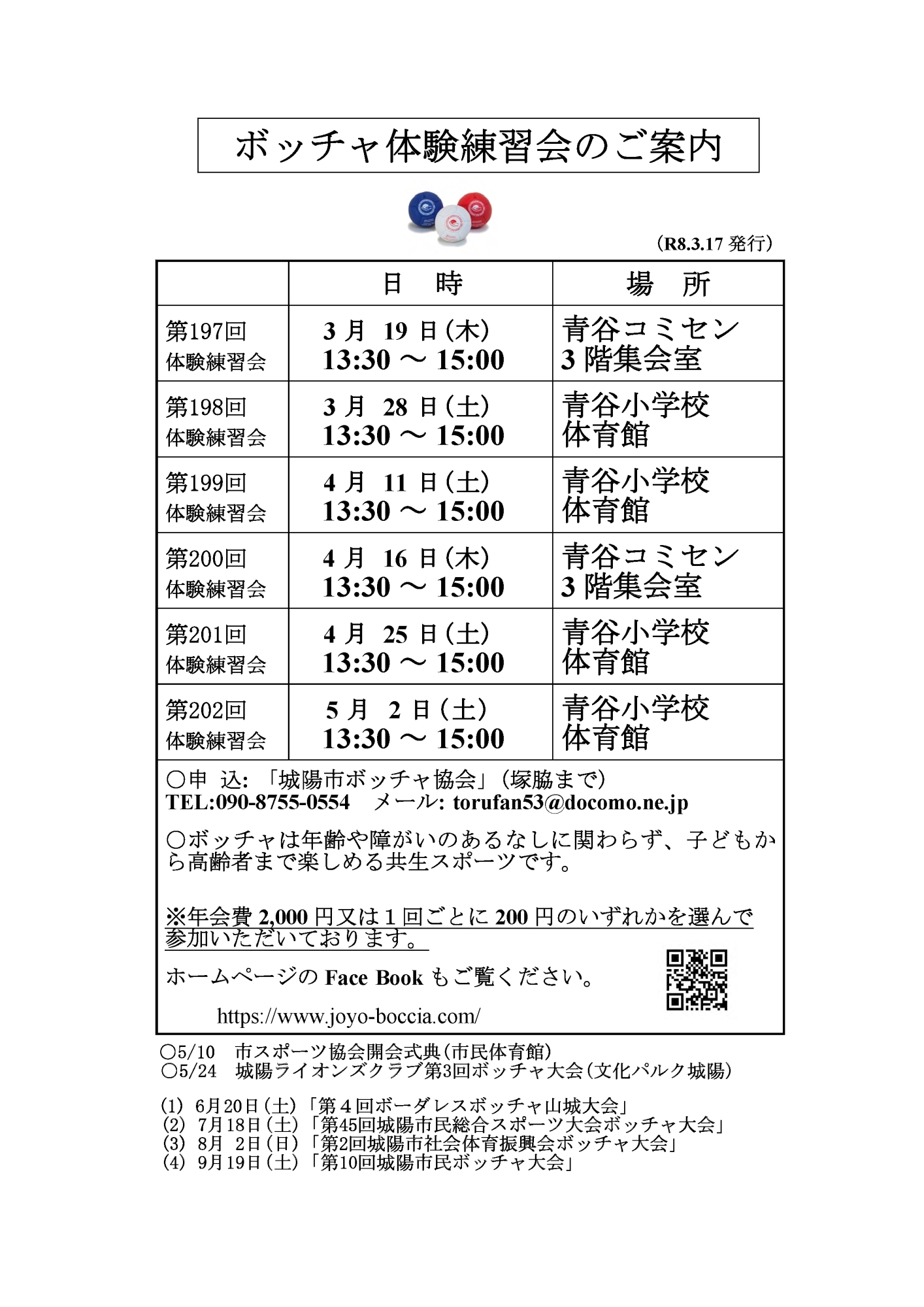当面の練習会日程(2026.3.17)